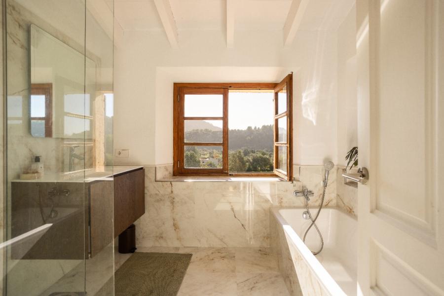 Set on approximately 30 acres of land in the foothills of the Tramuntana mountains and surrounded by mature oak trees, the home provides exceptional privacy, space and beautiful views across the surrounding countryside and mountain peaks. The total built area of around 450 m², including terraces, is distributed over two floors to create a comfortable and elegant living environment.