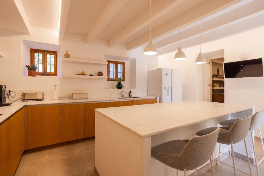 This delightful country home offers the perfect blend of traditional Mallorcan charm and modern design, ideally located just a short walk or drive from the historic town of Pollença. Fully renovated only four years ago, the property retains many authentic features such as natural stone walls and exposed wooden beams, while presenting a fresh contemporary interior with high-quality finishes throughout.